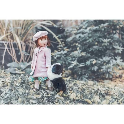 nspired by the styles of 1940s Britain, this lovely woolly doll coat and beret is the perfect way to keep your A Girl for All Time dolls warm all year! This single-breasted coat has a cute purple resin flower button and is fully lined. A warm beret is the perfect finishing touch.