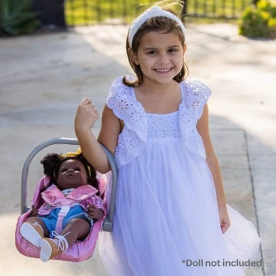 Fits dolls up to 20″ Easy to carry & put in the car Sparkly & glittery pink seat cover Size: 17x11x13Safety straps to ensure dolls & plush are snug and secure! Removable seat cover is 100% Machine Washable Encourages hours of nurturing, pretend play Perfect for little ones on-the-go! Ages 2 and up *Doll pictured is sold separately* Adora Glam Glitter Car Seat Carrier will add glitter fun to your life! Take your baby dolls and toddlers wherever you go with this trendy toy accessory that has a beautiful sparkly pink fabric and can fit stuffed animals, plush and vinyl dolls up to 20″ in size like our toddler doll Happy Camper and the rest of our ToddlerTime Dolls in collection. Adora Glam Glitter Car Seat Carrier is a MUST-HAVE baby doll car seat for every little-parent-on-the-go! Its ADORAbly stylish with additional function surprise: its sturdy handle rotates to become a stand! This toy accessory is built to last and also comes with safety straps to keep your baby dolls and toddlers secure and snug during a road ride or a quick stroll. Best of all these glam features, the car seat cover is 100% Machine Washable, so no need to worry when your little one makes a mess! This ADORAble baby doll car seat carrier is built to last for endless hours of playtime! Makes a great birthday or holiday gift to all the little trendsetters! Ages 2 and up. Browse our toy accessory collection for more ADORAble and stylish PlayDate accessories for your little ones!