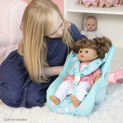 Make PlayTime fun again! ADORA’s Flower Power Car Seat is a must-have baby doll toy accessory for all the kids! This baby doll car seat is stylish yet functional with lots of floral fun and easy to carry for the little hands. This doll car seat features our new, bright blue, pink & white fun, flower print and can fit plush toys, stuffed animals, and dolls up to 20 inch in length. It has safety straps to ensure dolls & plush are snug and secure while on the road, or when your kids prefer to carry them around to the playground. Best thing is, its sturdy pink handle also rotates to become a stand!Flower Power Car Seat has a 100% Machine Washable removable seat cover, so no need to worry when your little one makes a mess! Time to buckle in your favorite and go on an adventure with this trendy doll car seat! Ages 2 and up. ?Doll pictured is sold separately.