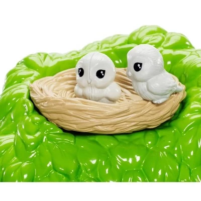 Barbie doll loves animals so she’s setting up a rescue center — where they live to give them care! With eight animal patients, this Barbie doll and woodland rescue center play set lets young animal lovers rescue animals. There’s a baby deer, a fox, two squirrels, two bunnies and two owls. Designed with a nature setting, the colorful care station (with two levels) is connected to a tree by a rope bridge that works with the animal-carrying basket. The tree features lots of places for the smaller animals to rest, like the nest atop the leaves, trunk cubby holes and a platform among the branches. Barbie animal doctor doll’s care station matches the tree at two stories tall with fun elements like a thatch roof with Barbie logo on top, cool colors and decals throughout and an animal bed below. Barbie doll is ready to see patients wearing a collared shirt, denim shorts and boots. A stethoscope, two bottles and a feeding bowl will help her care for the animals. Young imaginations will love playing out their aspirations with this animal rescue center because with Barbie , you can be anything! Includes Barbie doll wearing fashions and accessories, care station, tree, eight animals and accessories. Doll cannot stand alone. Colors and decorations may vary.
