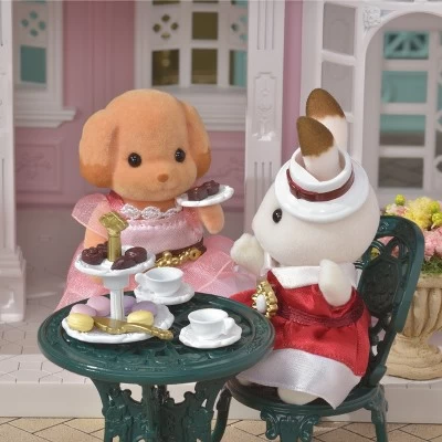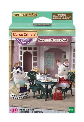 Calico Critters miniature dollhouses, playsets and figures are timeless and classic high-quality toys. The Tea and Treats Set is a furniture set containing a garden table, chairs, and tea party accessories. The furniture is designed with detailed, gorgeous engravings.