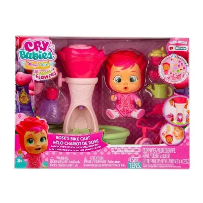 The Cry Babies Magic Tears Happy Flowers Rose’s Bike Cart playset will spark kids’ imagination to create fun storylines from the hit series or create their own stories! In this incredible playset, kids will find all necessary accessories to create their own Cry Babies Magic Tears pretend perfumes, just like Rose in the series! The Happy Flowers playset comes with an exclusive Rose doll and over 17 accessories! Follow the recipes and magic tears, the main flower will light up, and the pretend perfumes will be created. Play with Rose and have fun creating pretend perfumes with more than 17 accessories included: a baby bottle, a pacifier, a hand mirror, a watering can, 4 perfume bottles, 3 colorant containers, a bike with megaphone and GPS, a necklace and a mini perfume bottle!