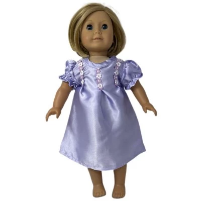 - Size 7 matching girl and doll lavender nightgowns are satin fabric.