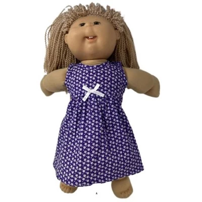 - Matching child and doll purple dot dress is cotton blend fabric.