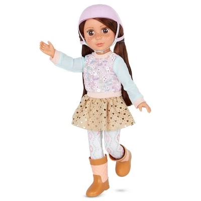 - 14-inch Equestrian Doll: Nora has auburn hair, cute freckles, deep brown eyes, and horseback riding is her favorite!