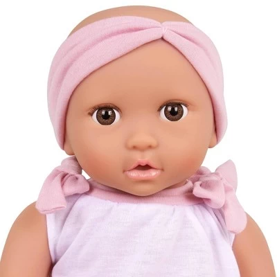 - Includes: Baby doll is nestled in a cute 2-piece outfit with a matching pink headband and a removable pacifier accessory; safety-tested to meet all BPA and phthalate requirements.