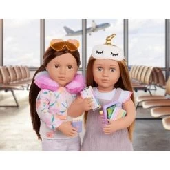 Twirl and shine with Savannah, the Our Generation 18-inch ballerina doll with long, wavy blonde hair and dark-blue eyes that open and close! Savannah can rotate her neck, arms, and legs to perform pirouettes and other fun ballet poses as she dances on stage. Dress Savannah in her cozy pink shrug to practices her routine, then put on a magical show in her stunning ballet dress! It features a pink leotard with a light-purple tulle skirt and decorative ribbon at the waist. And the matching headband will add an extra touch of sweetness to her many hairstyles! Savannah’s outfit also has easy-open closures to quickly put on and remove, so she can celebrate with her friends in other colorful outfits after she takes a bow! (Dolls and additional outfits sold separately)