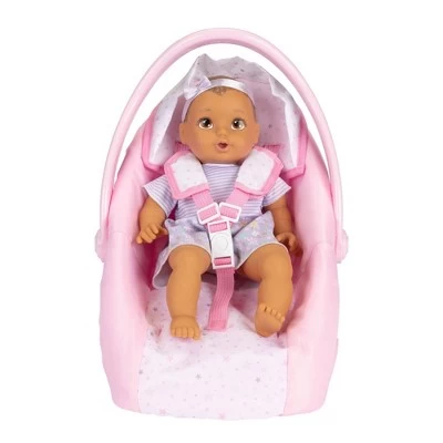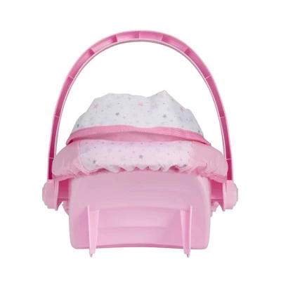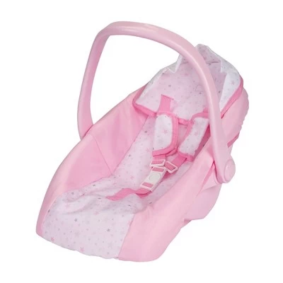 On the go travel with your baby doll is super fun and easy with the Perfectly Cute Baby Doll Car Carrier. Mindfully designed for imaginative & nurturing pretend play, this adorable star covered carrier features adjustable padded safety straps, rotating handle, removable fabric cover, and more! Super durable & easy to clean! Fits most standard baby dolls up to 18 inches.