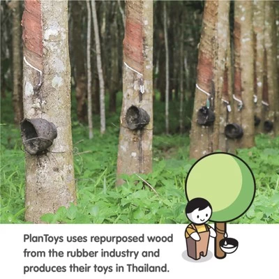 - Designed using PlanWood, a unique PlanToys material that utilizes surplus sawdust and wood scraps to create a sustainable, flexible wooden material